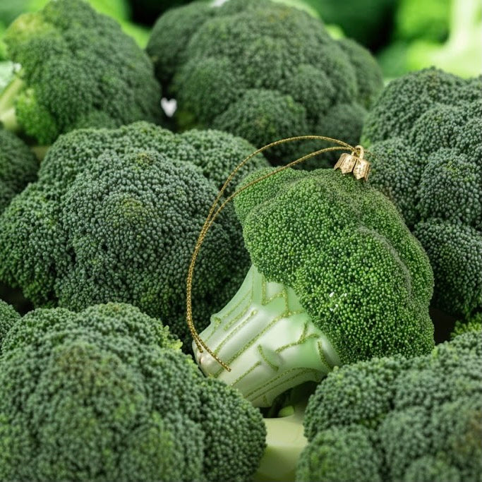 Bursting with vibrant green sparkle, ourbroccoli glass ornament brings a fresh-from-the-garden feel to your Christmas tree. With its glittered florets and glossy stem, this cheerful veggie adds a touch of whimsy and healthful humour to your festive décor.