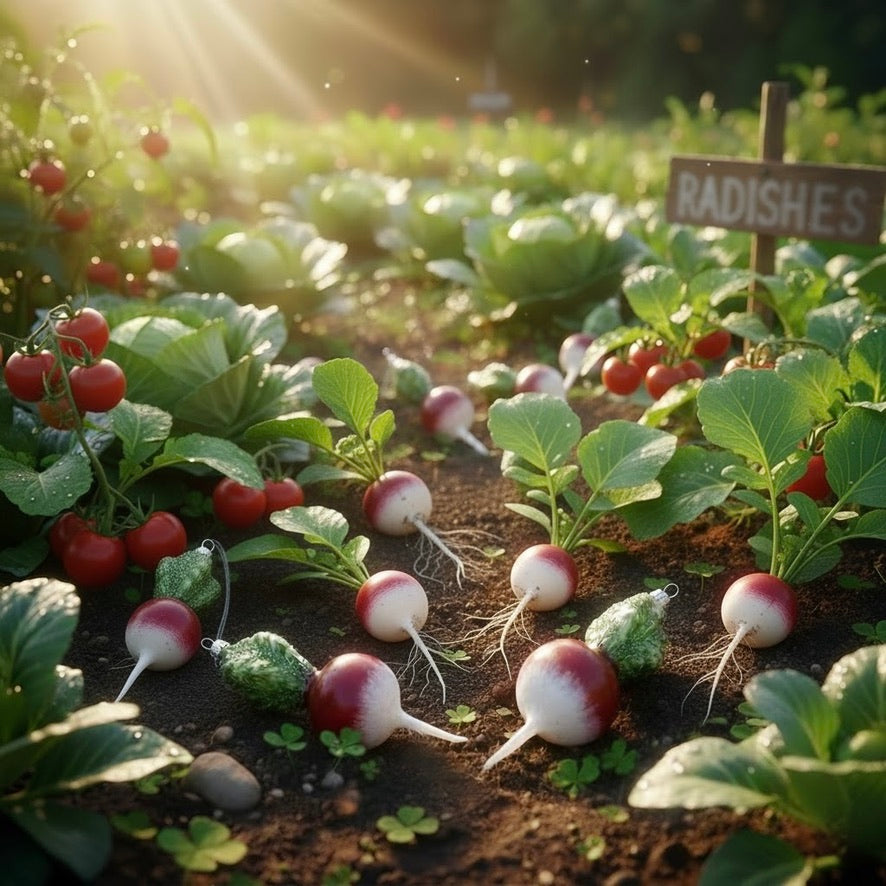Add a pop of colour and charm to your holiday tree with our radish glass ornament. Hand-painted in vibrant red with frosted white tips and leafy green detail, this whimsical veggie captures the fresh-from-the-garden feel of springtime.