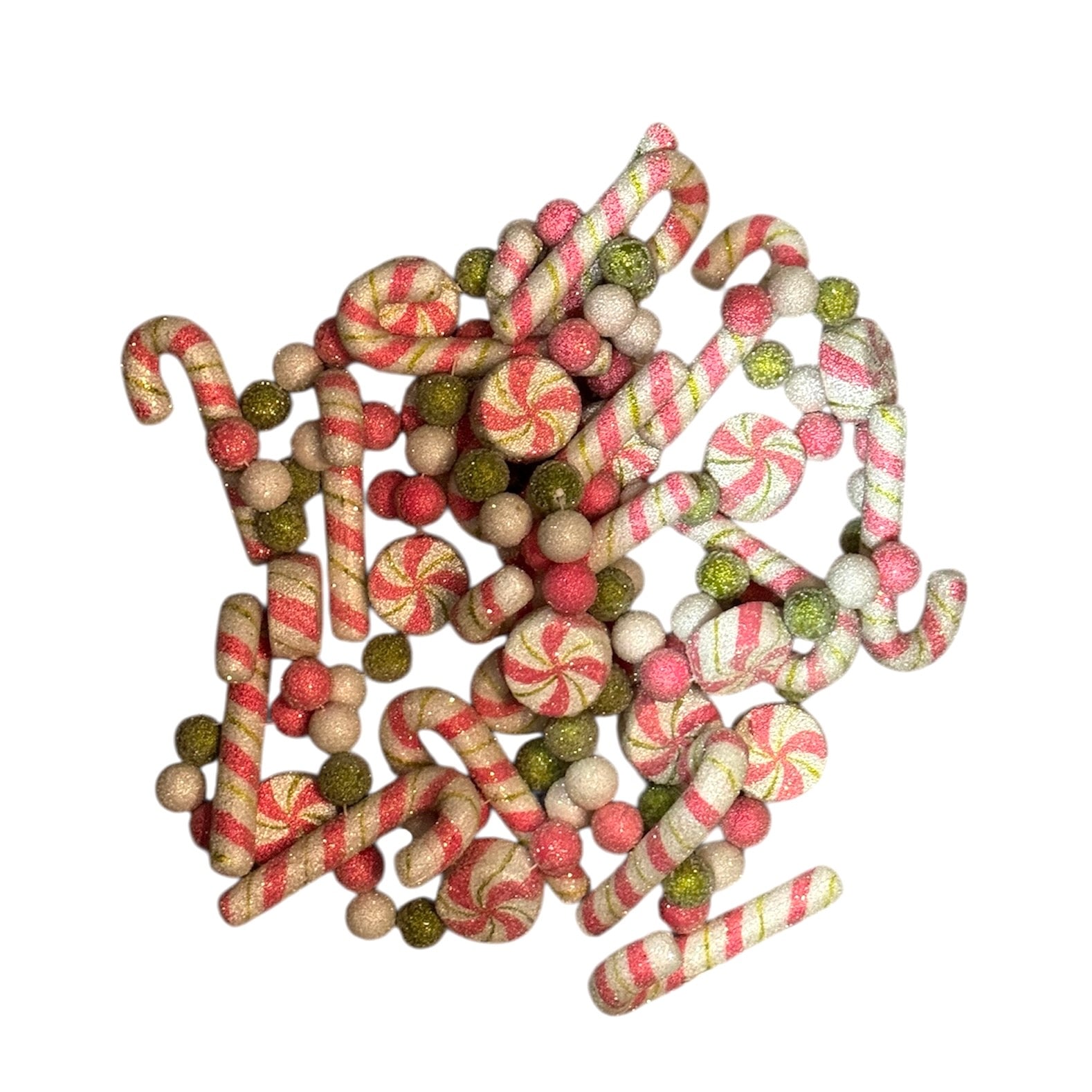 Garland with glittered pink and moss green  peppermint  candy canes and swirl candy garland