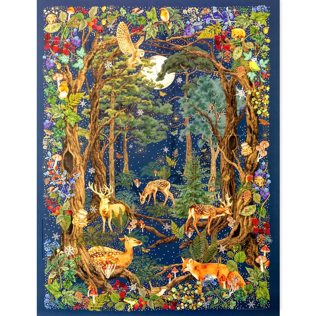 Count down to Christmas in style with this stunning and symbolic advent calendar. This advent calendar features a moonlit forest scene of animals and botanicals under a star-studded sky.